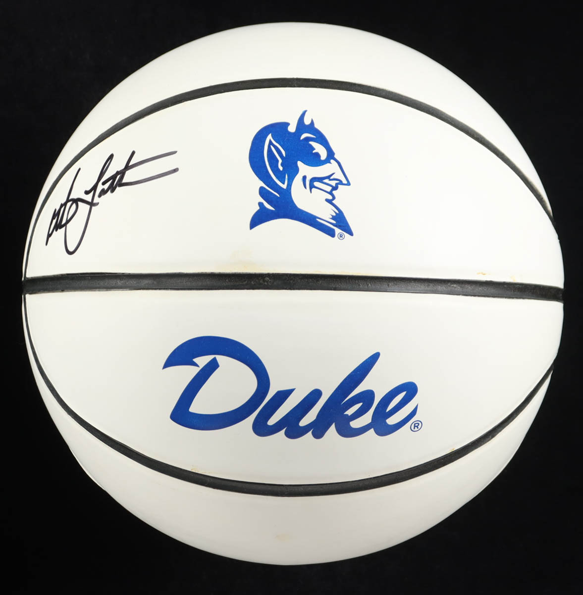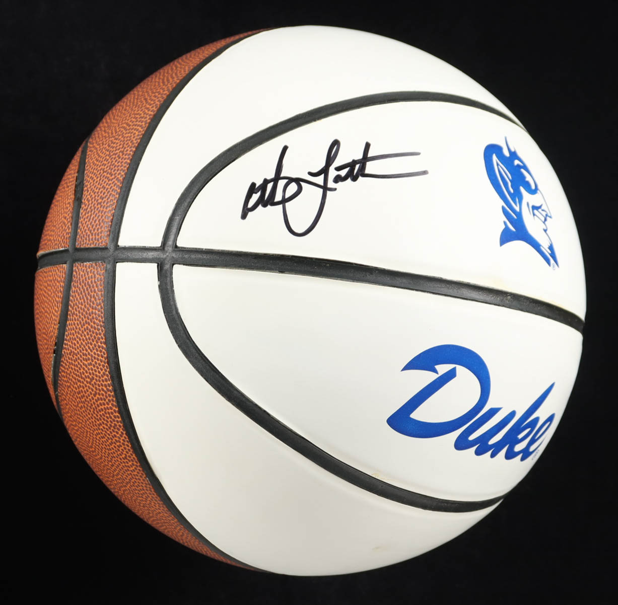 Duke White Panel Logo basketball. Hand-signed by Christian Laettner (Duke Blue Devils).