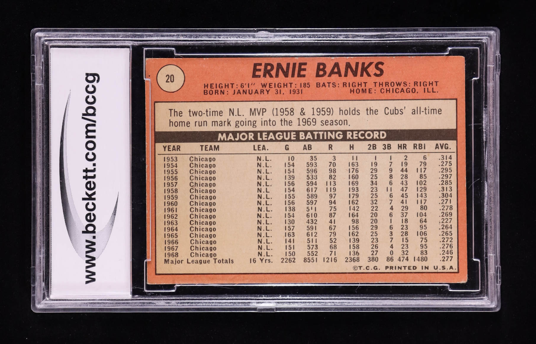 Ernie Banks 1969 Topps #20 (BCCG 10)