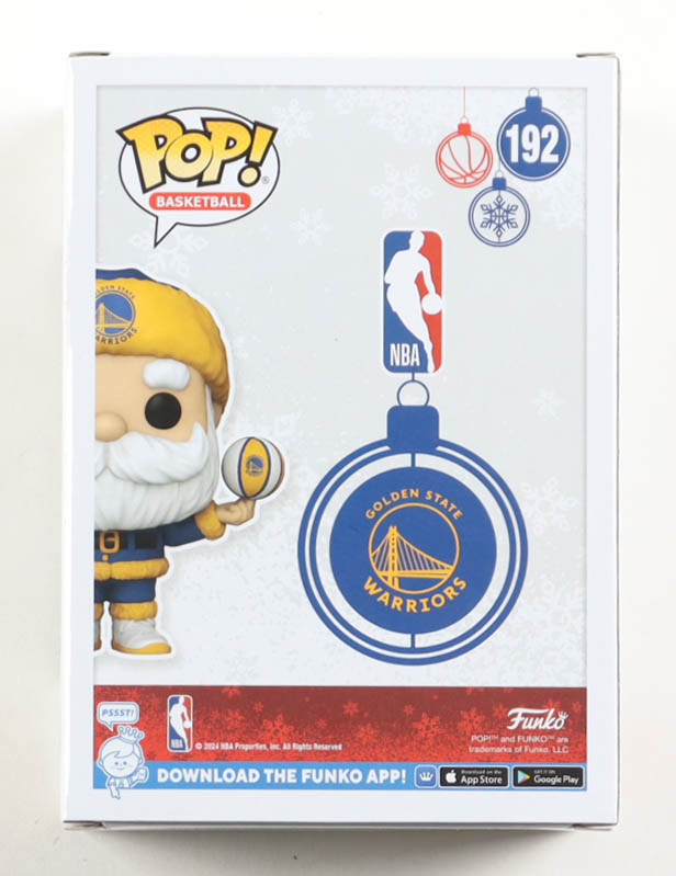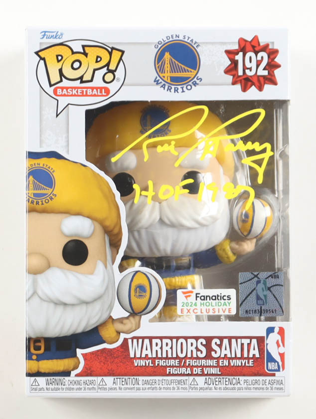Funko Pop! vinyl figure measures approximately 4" tall. Hand-signed and inscribed on the packaging by Rick Barry (Golden State Warriors).