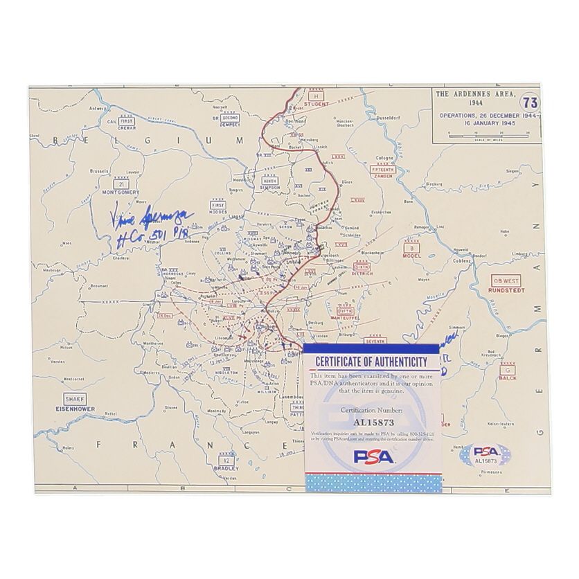 Vincent Speranza & Bradford C. Freeman Signed Battle of the Bulge 8x10 Photo with Service Record Inscriptions (PSA)