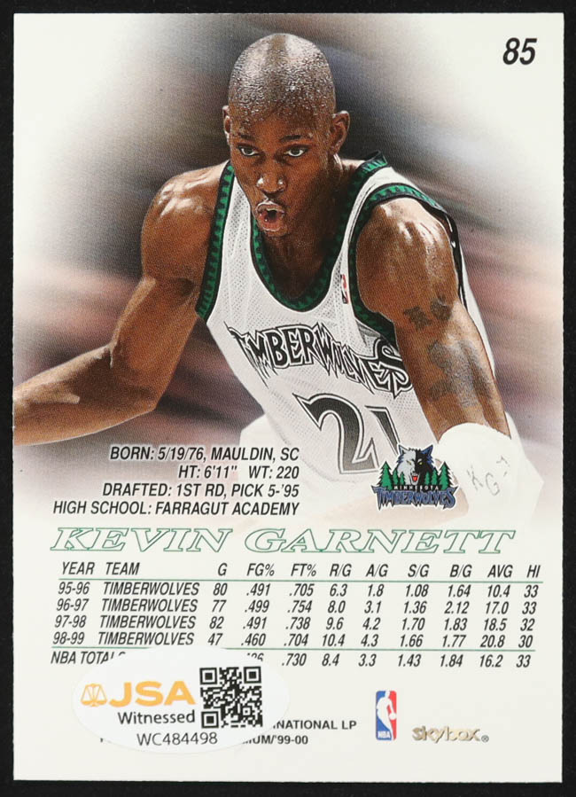 Kevin Garnett Signed 1999-00 SkyBox Premium #85 (JSA)
