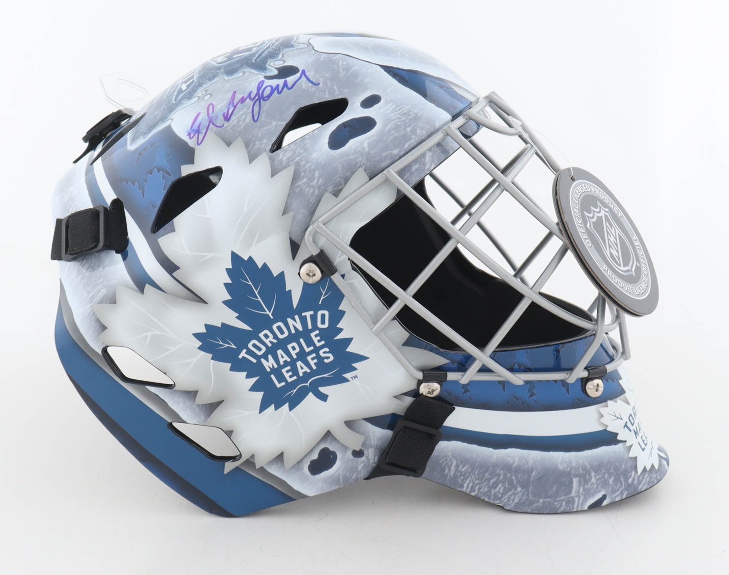Toronto Maple Leafs Full-Size goalie mask has been hand-signed by Ed Belfour (HOF).