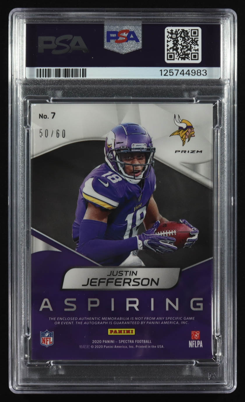 Justin Jefferson 2020 Panini Spectra Aspiring Patch Hyper Autographs #7 RC #50/60 (PSA | Autograph Graded PSA 10)