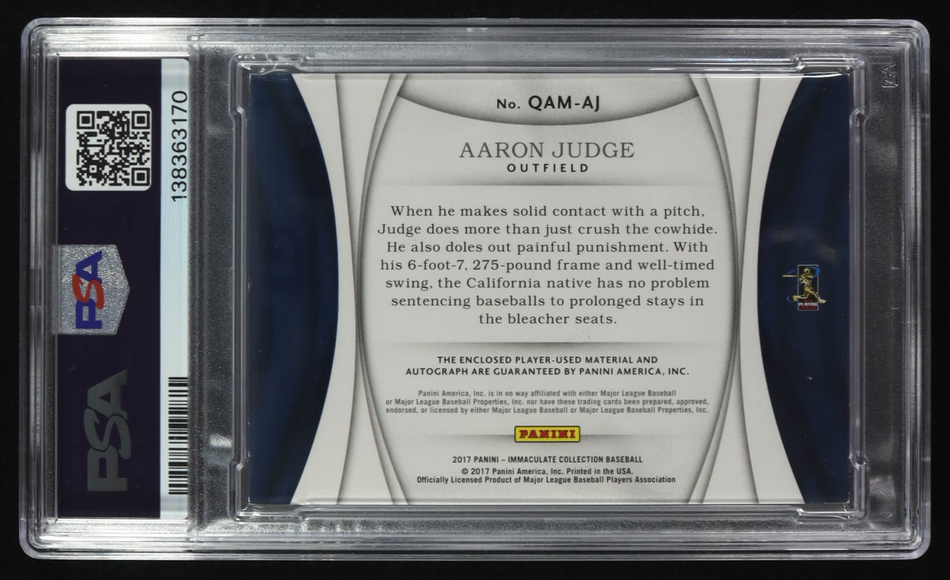 Aaron Judge 2017 Panini Immaculate Quad Materials Rookie Autographs #QA-MAJ RC #49/99 (PSA | Autograph Graded PSA 10)
