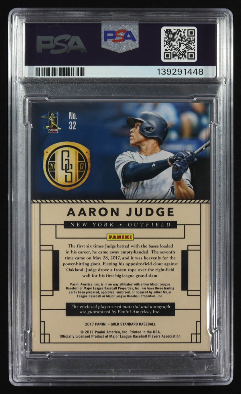 Aaron Judge 2017 Panini Chronicles Gold Standard Rookie Jersey Autographs #32 RC #135/199 (PSA | Autograph Graded PSA 10)
