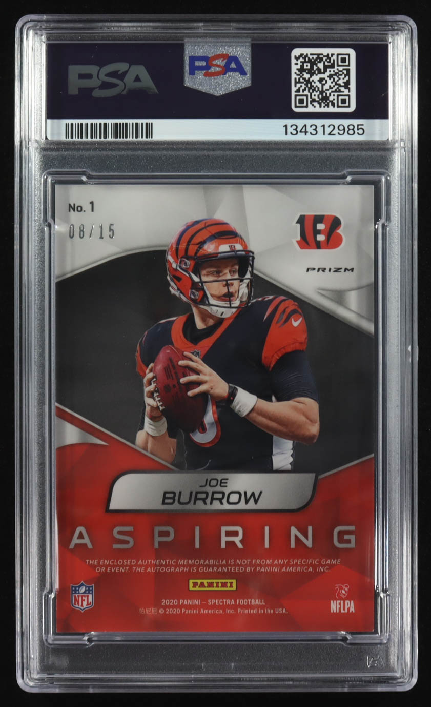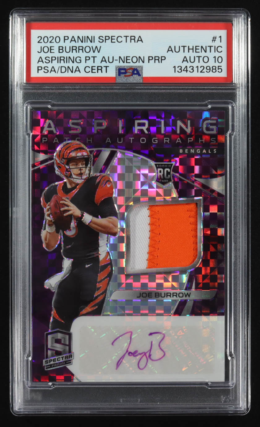 Joe Burrow 2020 Panini Spectra Aspiring Patch Autographs Neon Purple #1 RC #08/15 (PSA | Autograph Graded PSA 10)