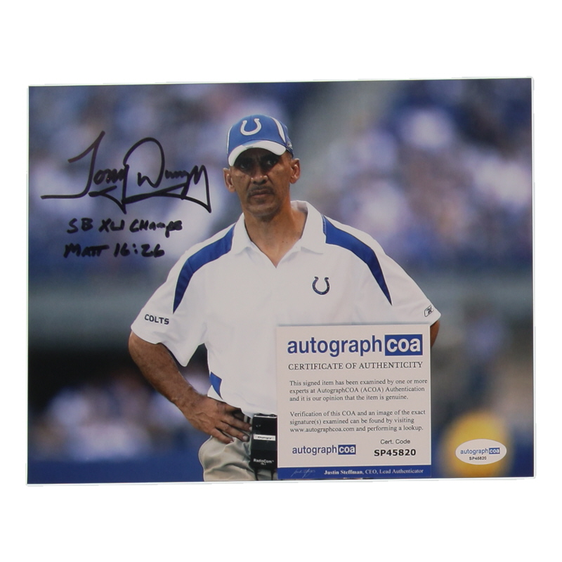 Photo measures 8" x 10" in size and has been hand-signed and inscribed by Tony Dungy (Indianapolis Colts, HOF).