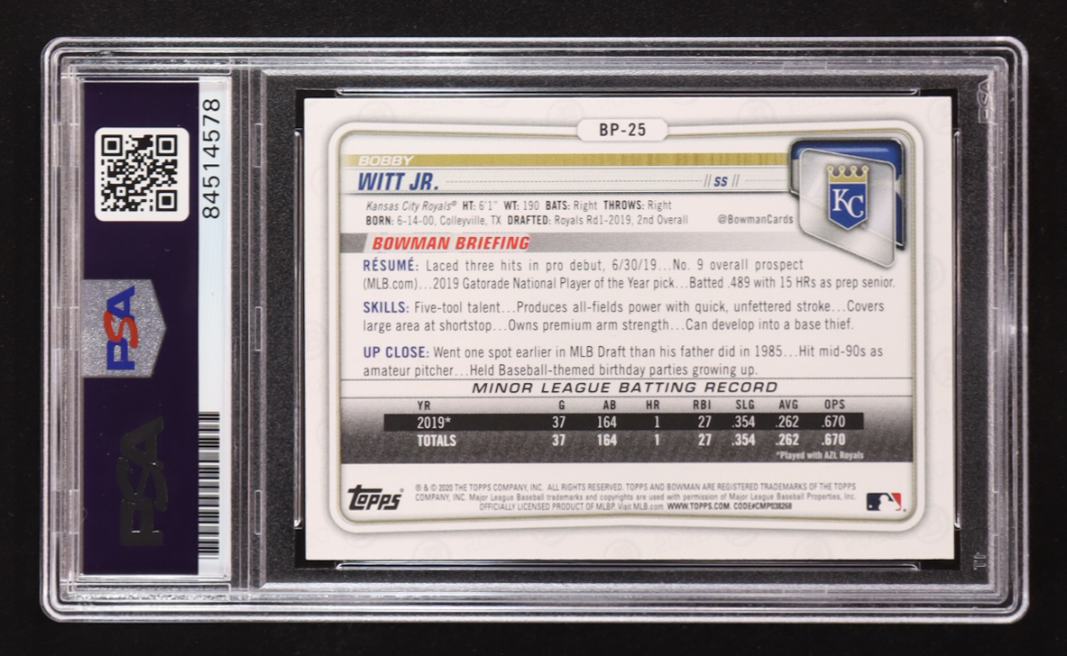 Bobby Witt Jr. Signed 2020 1st Bowman #BP-25 RC (PSA | Autograph Graded PSA 10)