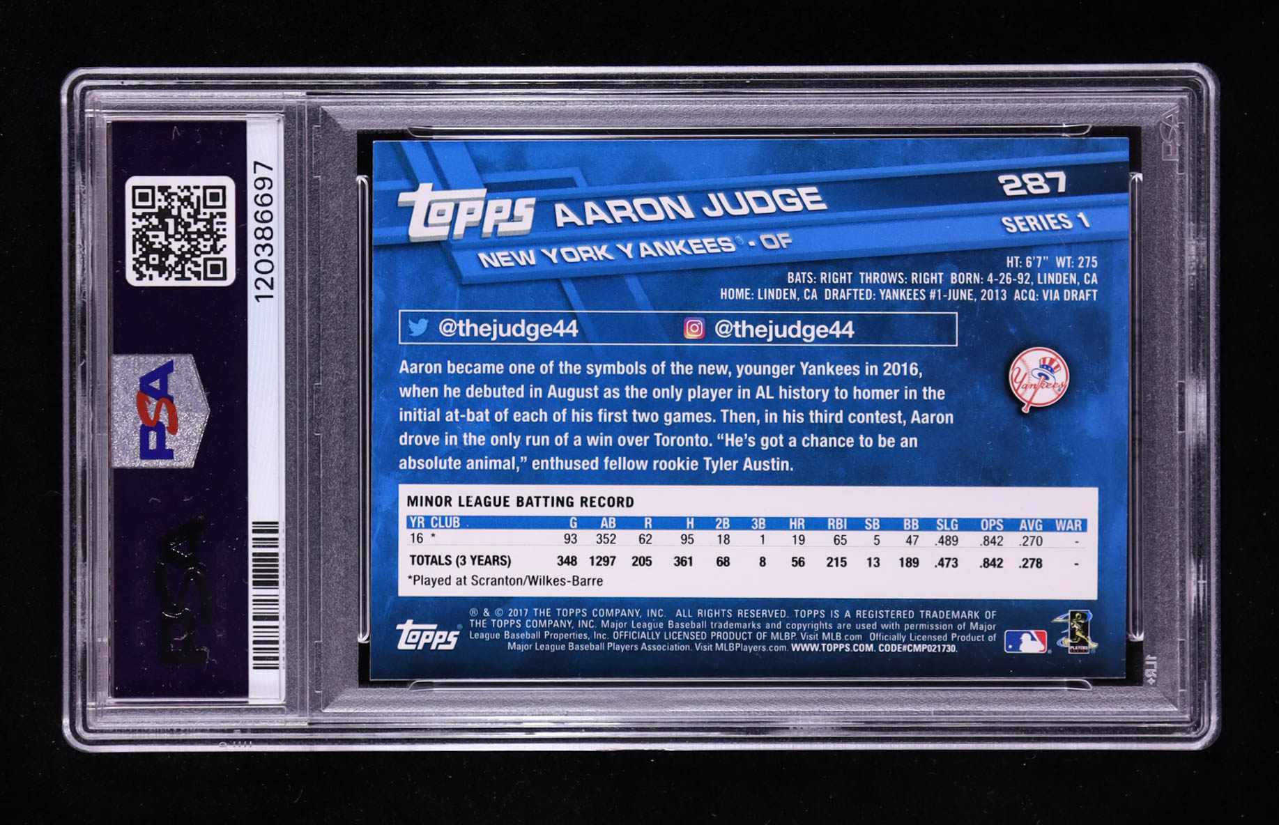 Aaron Judge 2017 Topps #287A RC (PSA 9)