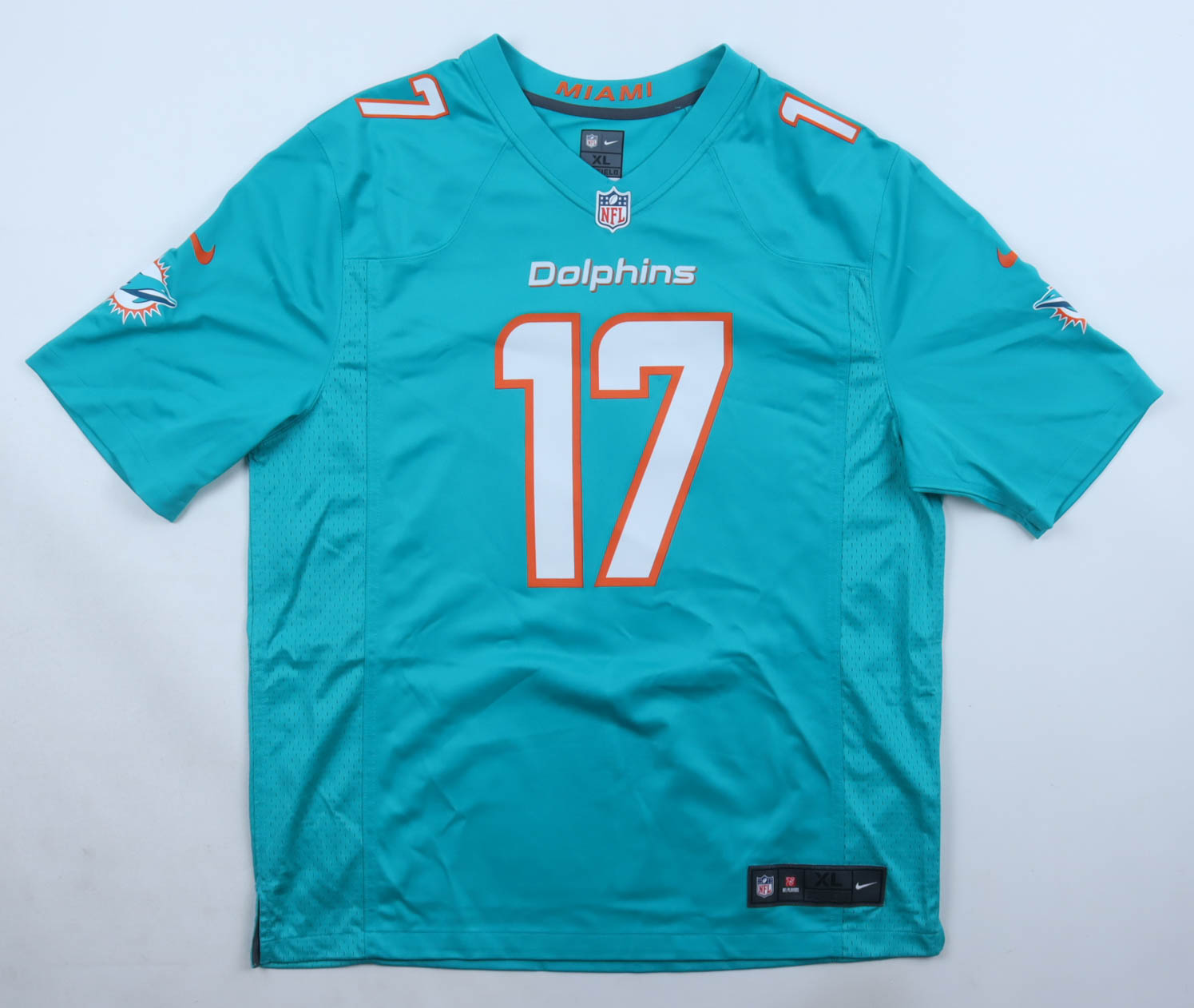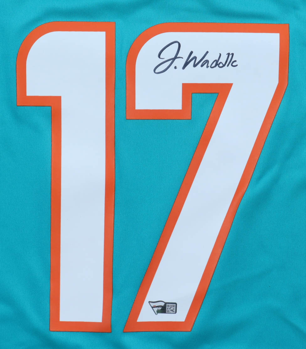 Nike jersey with everything pressed on, size XL. Hand-signed by Jaylen Waddle (Miami Dolphins).