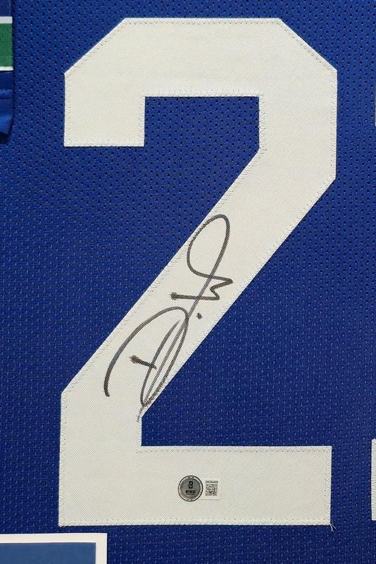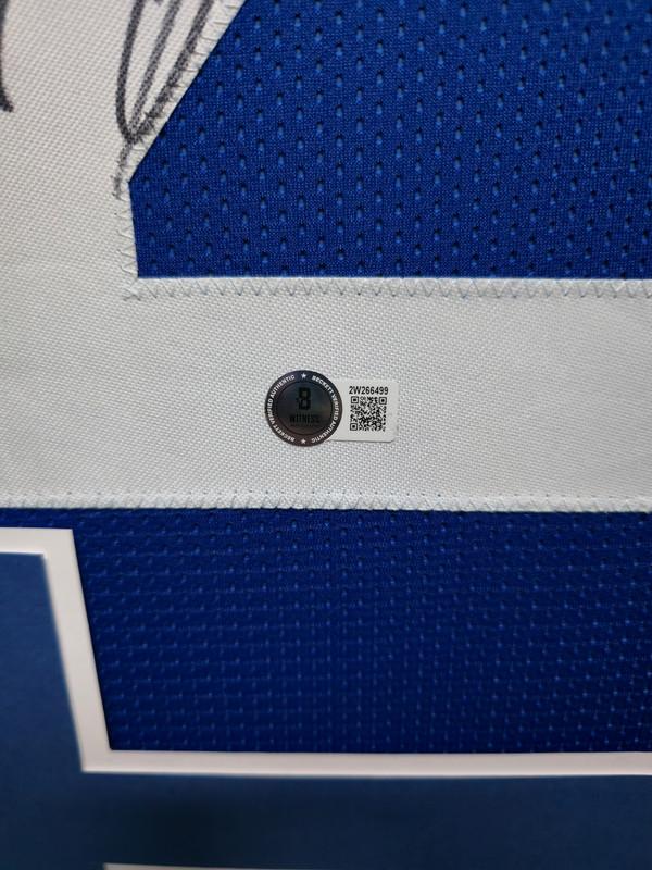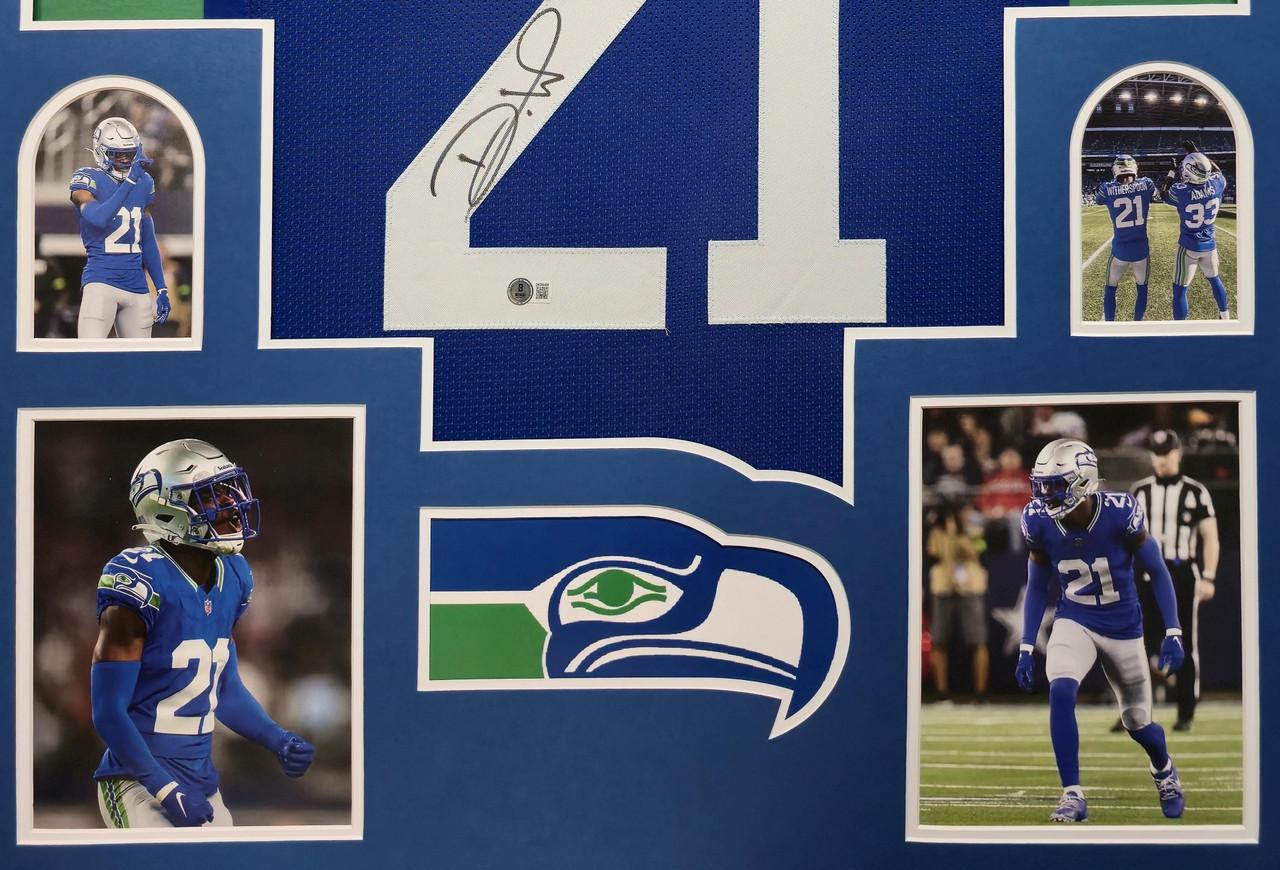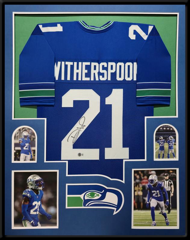Custom frame measures 34" x 42" in size and features a jersey that has been hand-signed by Devon Witherspoon.