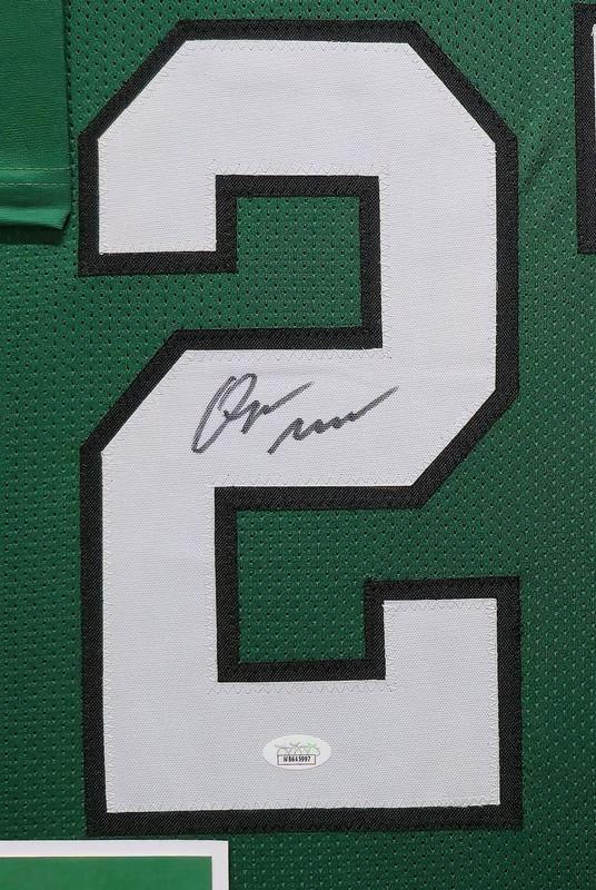 Custom frame measures 34" x 42" in size and features a jersey that has been hand-signed by Quinyon Mitchell.