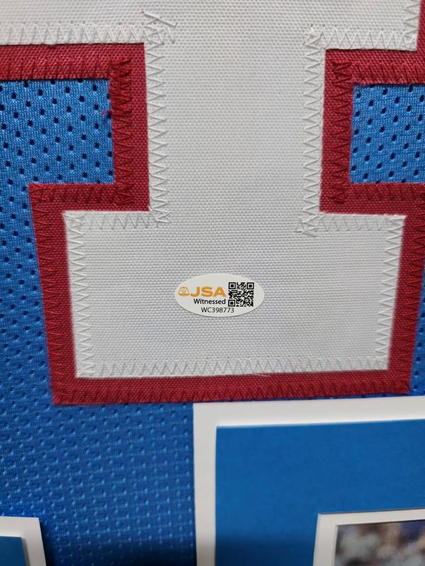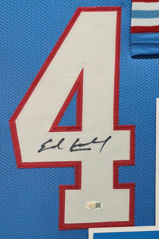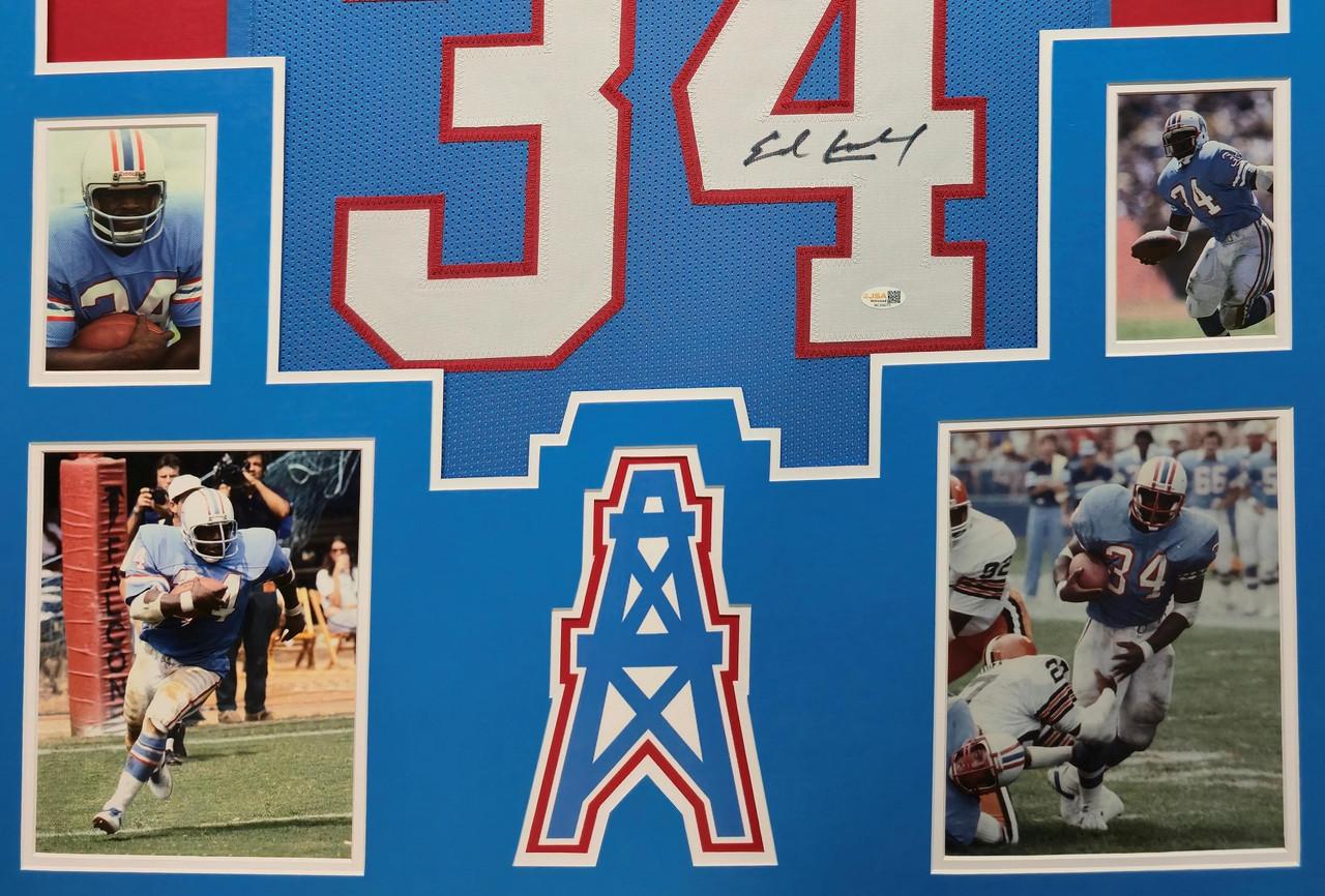 Custom frame measures 34" x 42" in size and features a jersey that has been hand-signed by Earl Campbell (HOF).