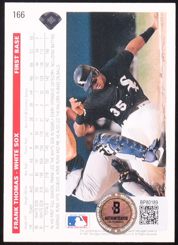 Frank Thomas Signed 1992 Upper Deck #166 (Beckett)