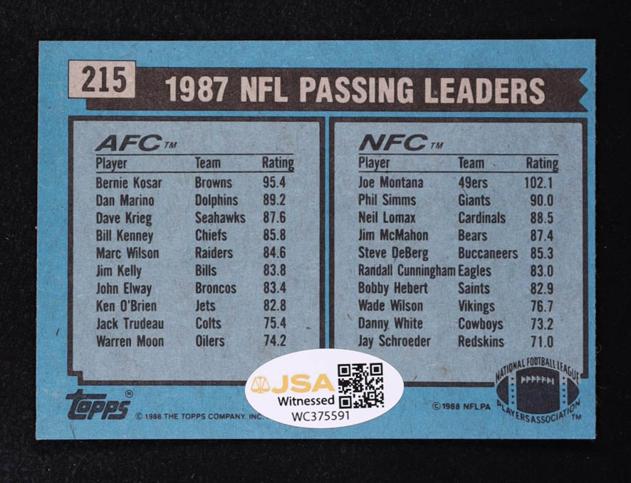 Bernie Kosar Signed 1988 Topps Passing Leaders #215 (JSA)