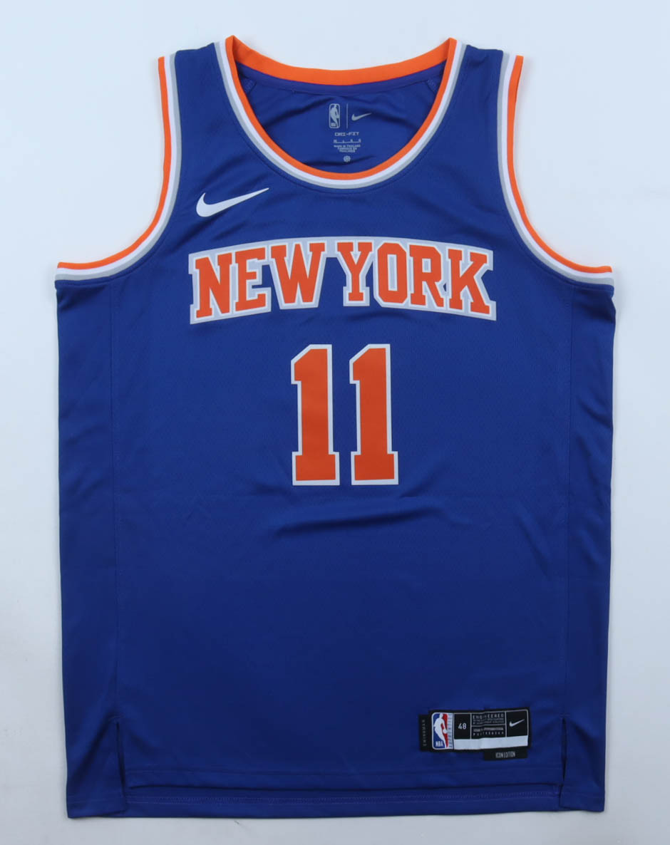 Nike authentic jersey with everything pressed on, size 48. Hand-signed by Jalen Brunson (New York Knicks).