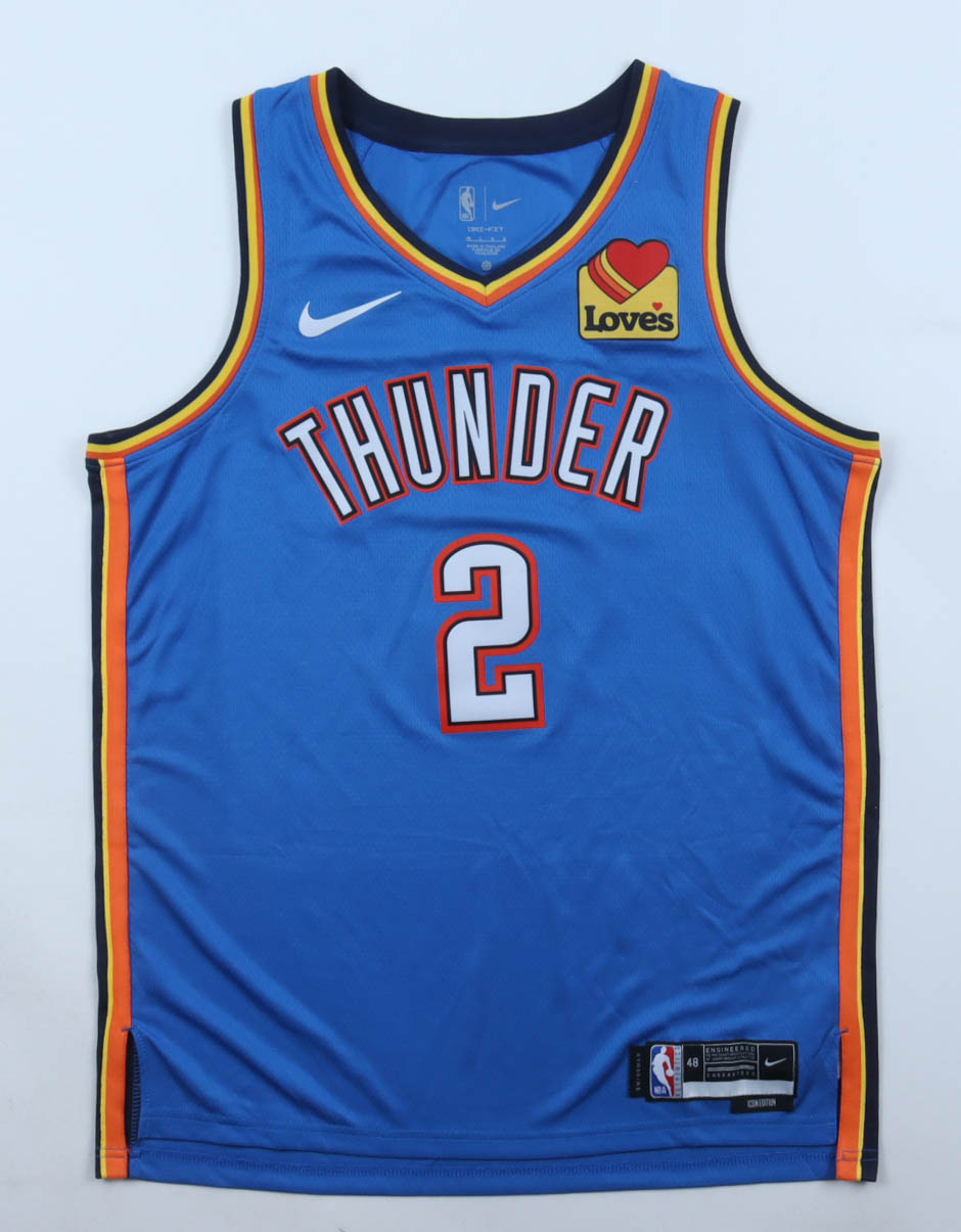 Nike authentic jersey with everything pressed on, size 48. Hand-signed by Shai Gilgeous-Alexander (Oklahoma City Thunder).