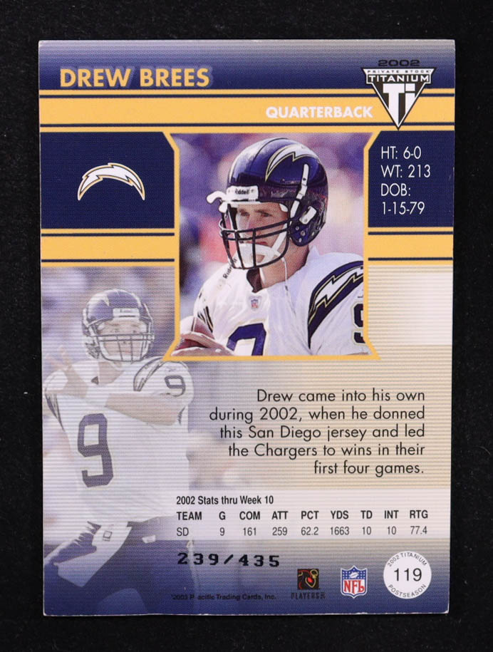 Drew Brees 2002 Titanium Post Season Patch #119 #239/435 RC
