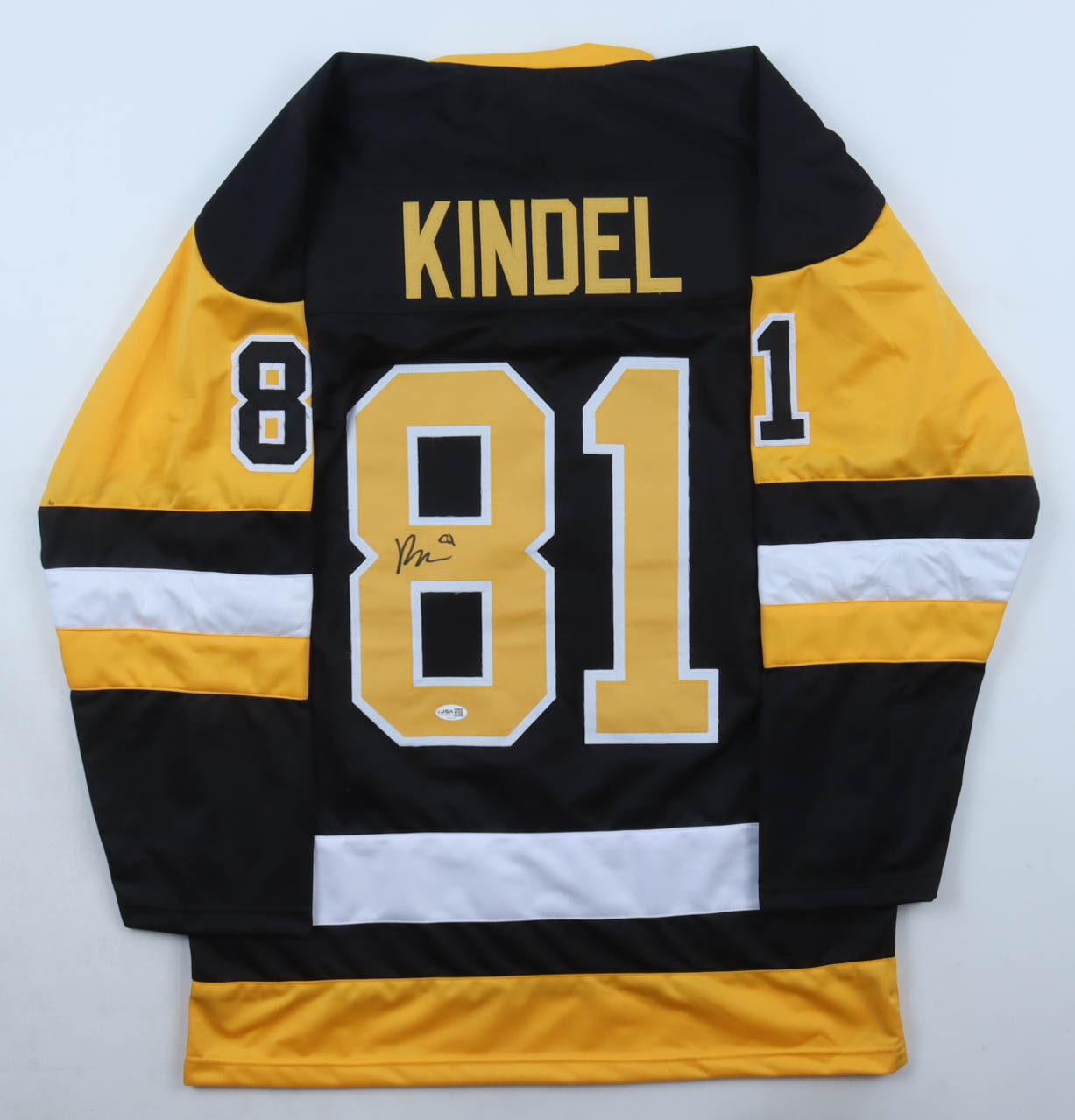 Custom jersey with everything sewn on, size XL. Hand-signed by Ben Kindel.