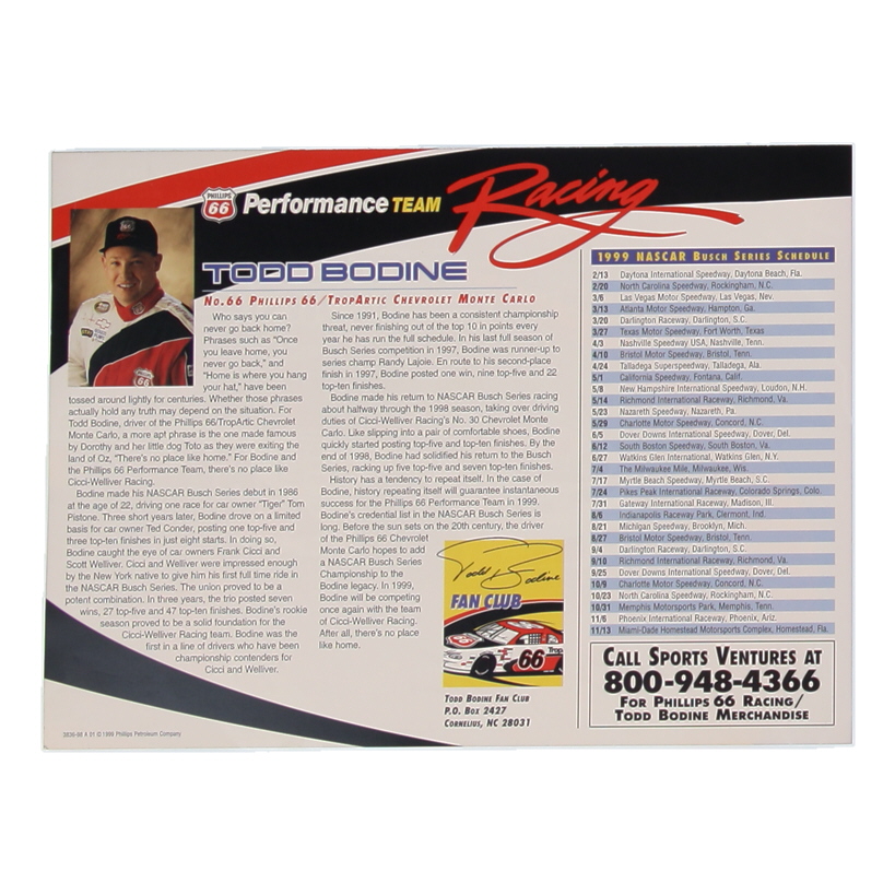 Todd Bodine Signed NASCAR 8.5x11.5 Hero Card (Beckett)
