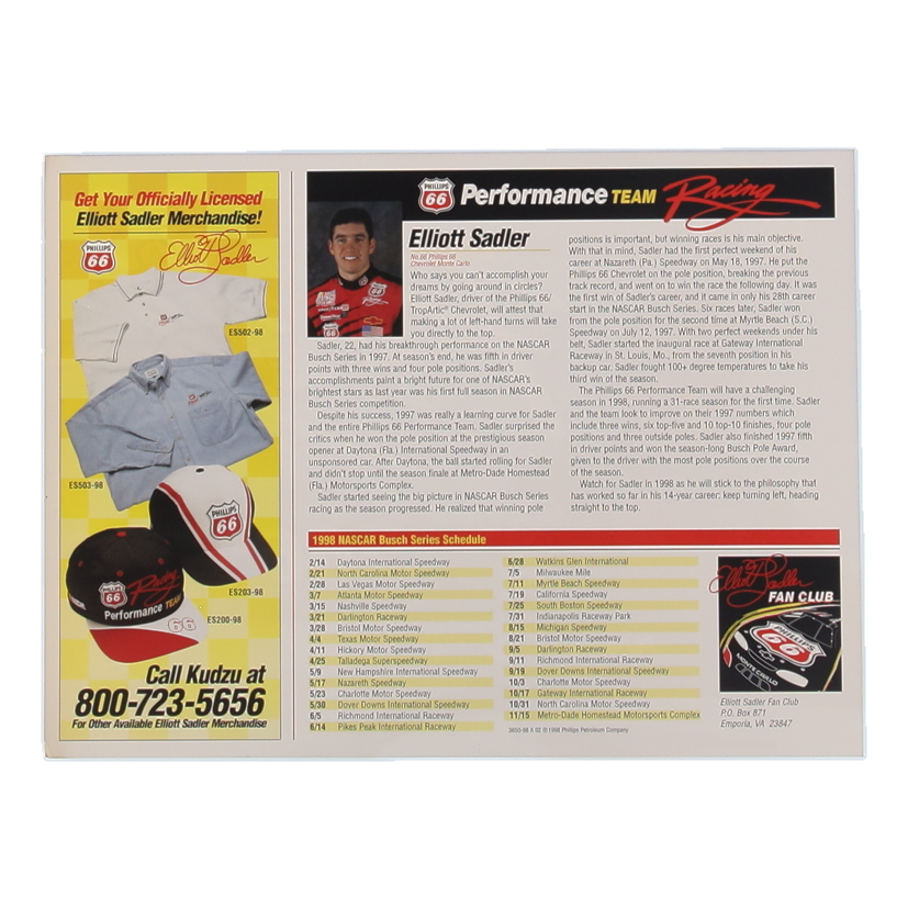 Elliott Sadler Signed NASCAR 8.5x11.5 Hero Card (Beckett)