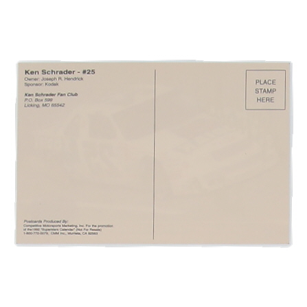 Postcard has been hand-signed by Ken Schrader and Ken Howes.