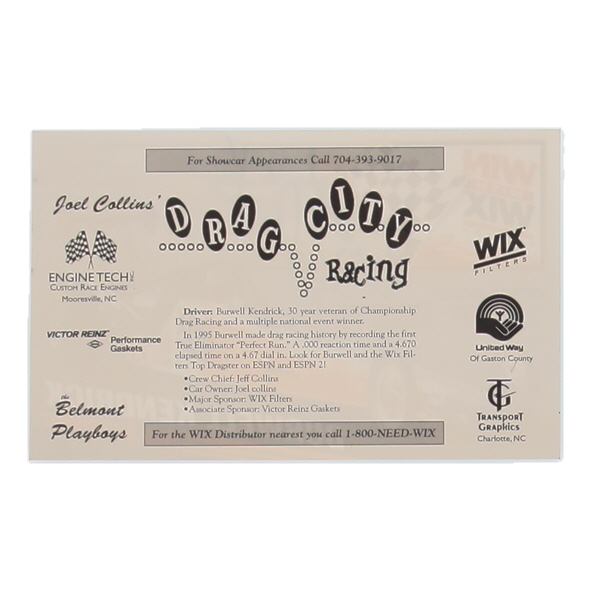 Burwell Kendrick Signed NHRA 5x8 Hero Card (Beckett)