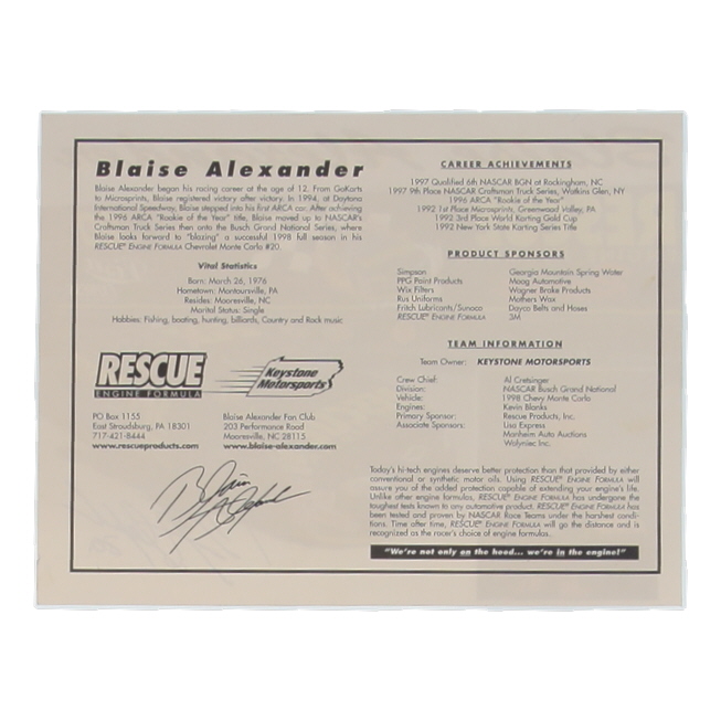 Blaise Alexander Signed NASCAR 7x9 Hero Card (Beckett)