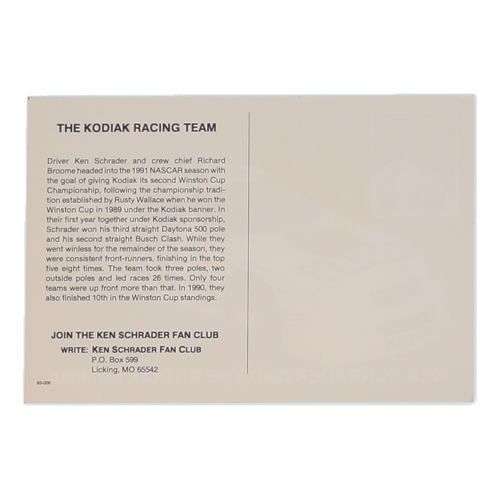 Ken Schrader Signed NASCAR 6.5x9.5 Hero Card (Beckett)
