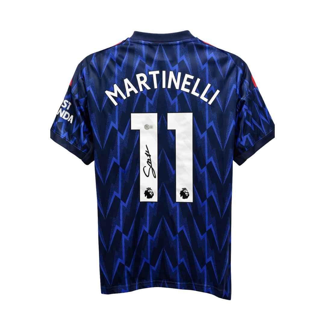 Adidas jersey with everything pressed on, size M. Hand-signed by Gabriel Martinelli.