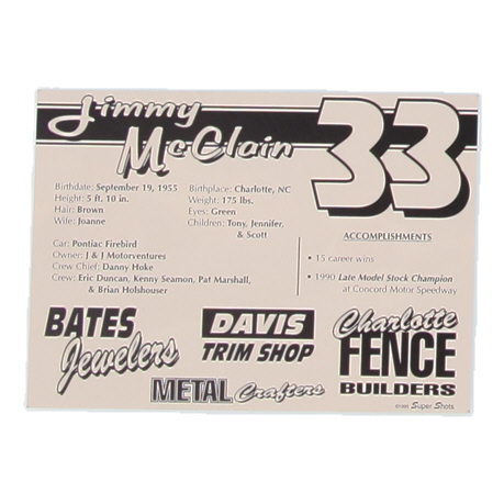 Jimmy McClain Signed NASCAR 4x6 Hero Card (Beckett)