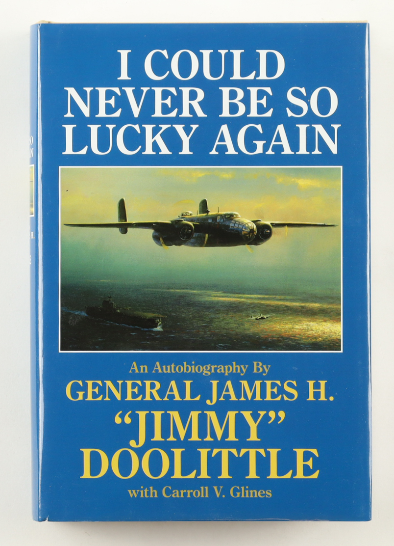 "I Could Never Be So Lucky Again" hardcover book has been hand-signed on the inside cover page by Jimmy Doolittle (D. 1993). Please note, there is some minor edge and corner wear as well as scuffing on the cover dust jacket.