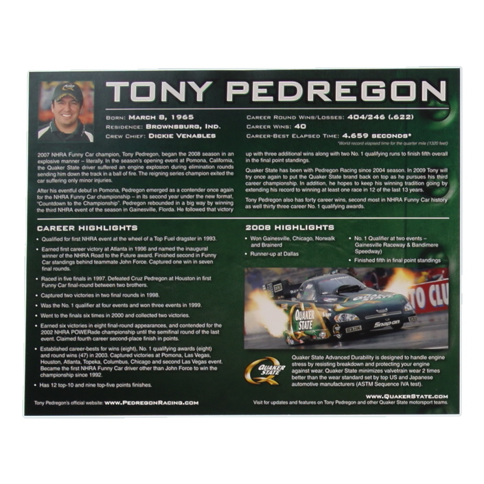 Tony Pedregon Signed NHRA 8x10 Hero Card (Beckett)