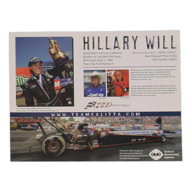 Hillary Will Signed NHRA 8.5x11 Hero Card (Beckett)
