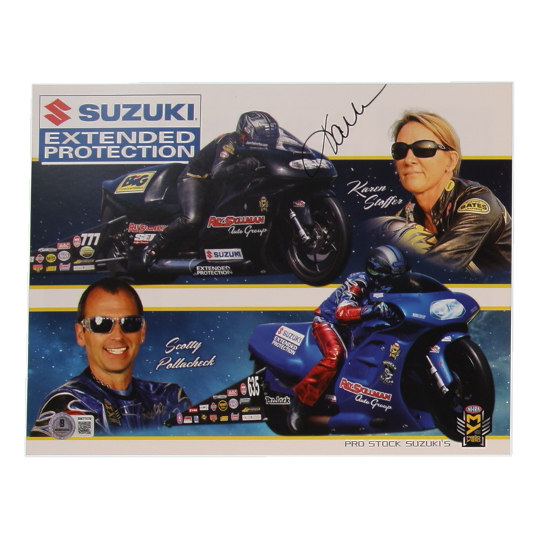 Karen Staffer Signed NHRA 8.5x11 Hero Card (Beckett)
