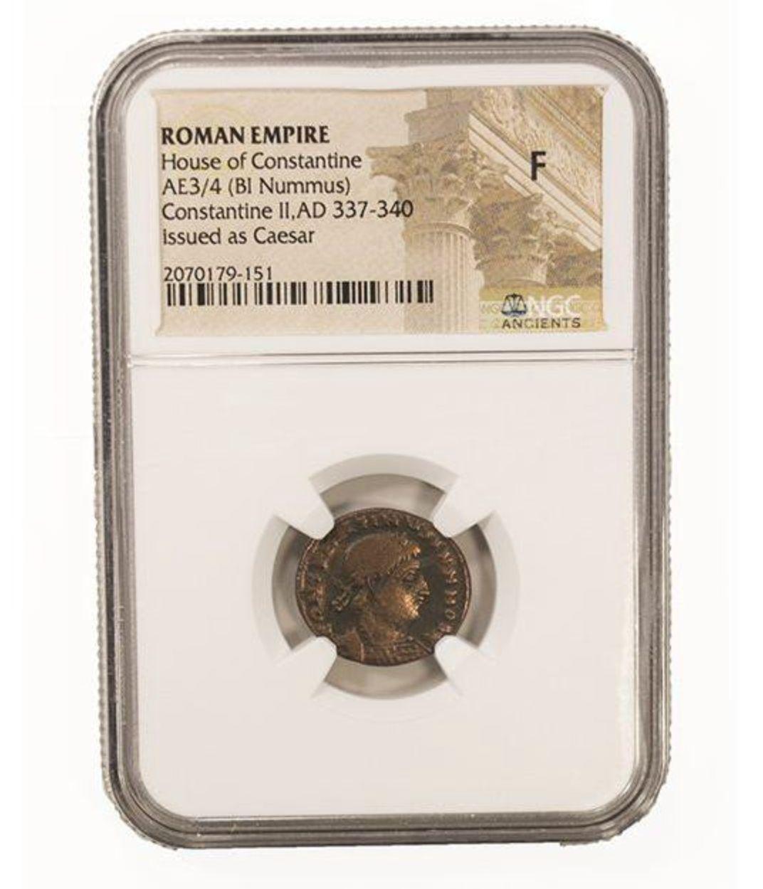 Roman Empire - Constantine II, AD 337-340, Issued as Caesar - AE3/4 BI (Nummus) (NGC F)