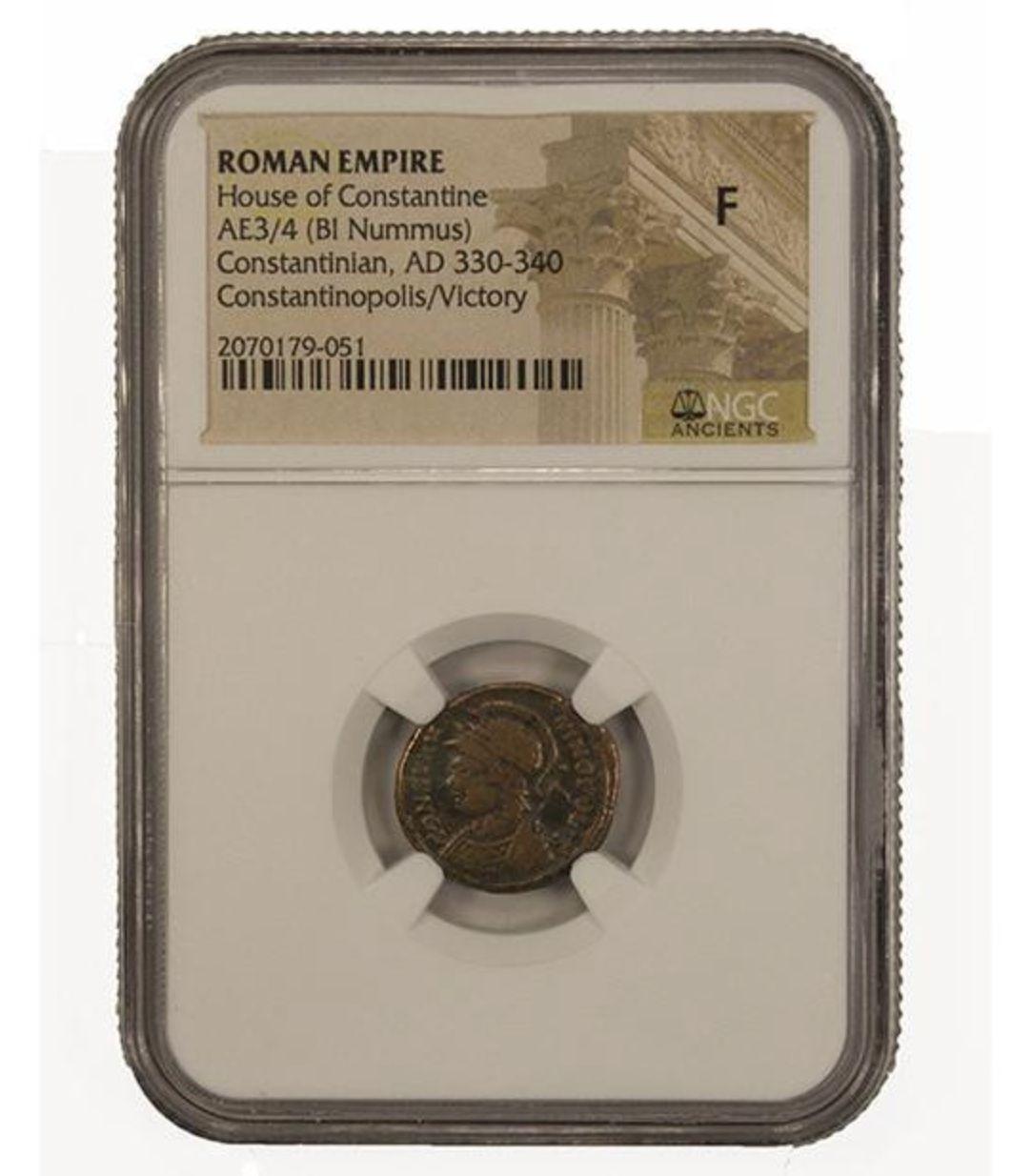 Roman Empire - Constantinian, AD 330-340, AE3/4 (BI Nummus) - House of Constantine / Constantinopolis/Victory (NGC F)