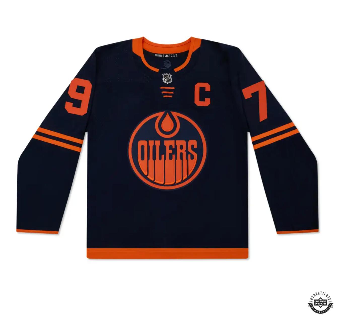 Adidas jersey with everything sewn on, size XL. Hand-signed by Connor McDavid (Edmonton Oilers).