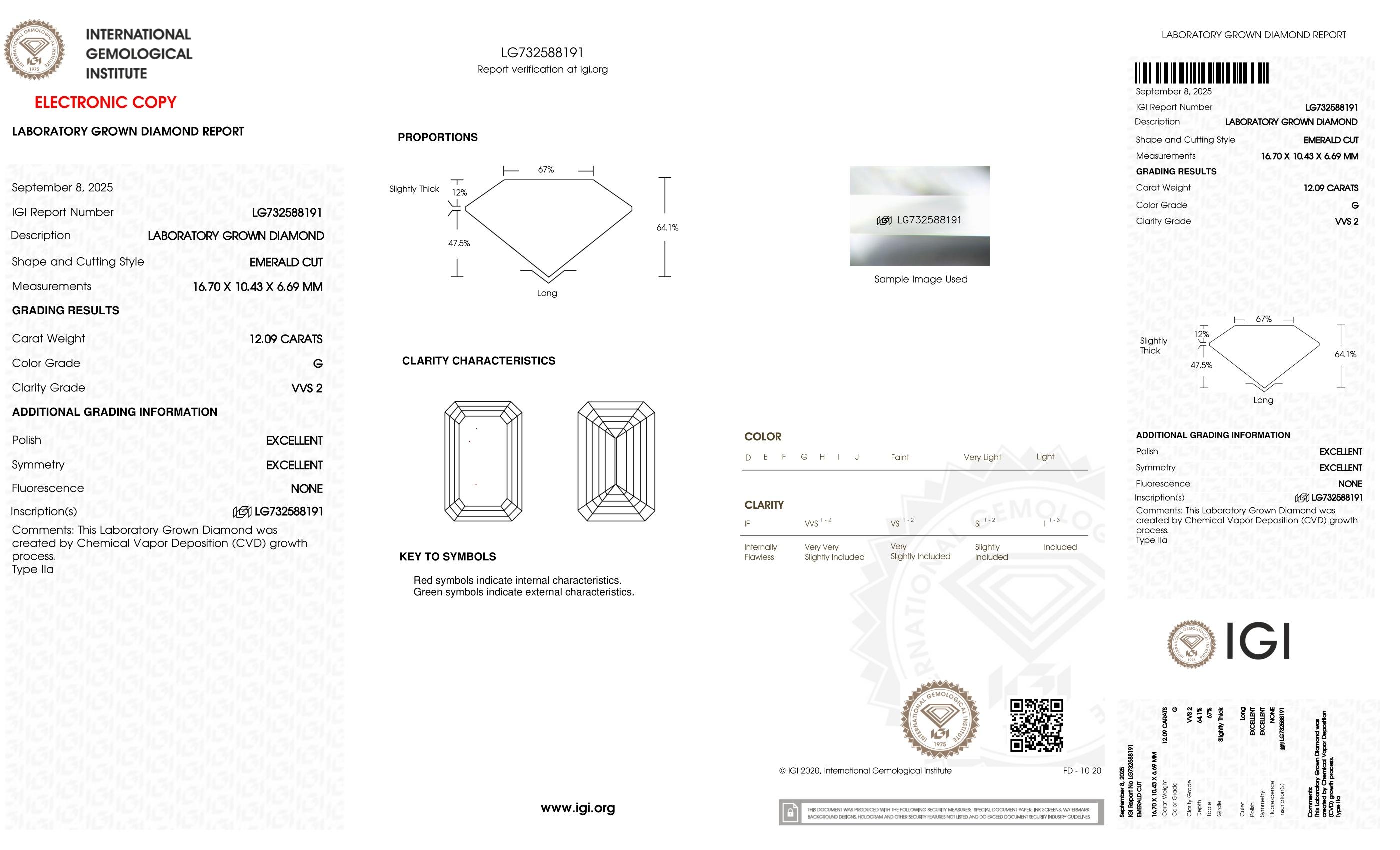 12.09 Carats Lab Grown Diamond Ring G, VVS2 | $18,000 Estimated Retail Value (UGL & IGI Certs) | Emerald Cut| Brand New