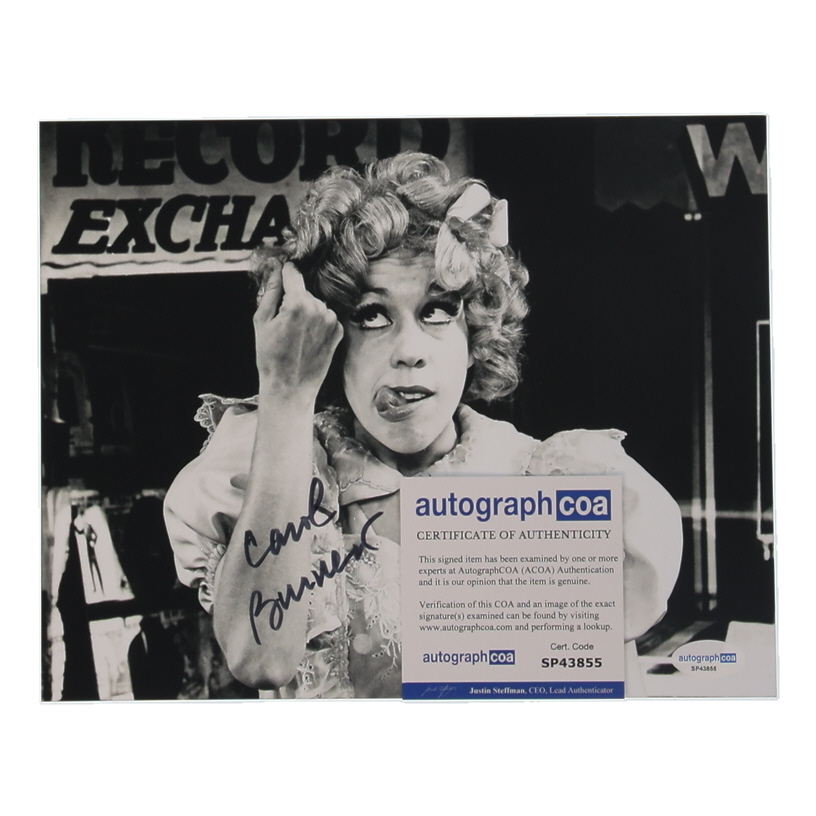 Photo measures 8" x 10" in size and has been hand-signed by Carol Burnett.