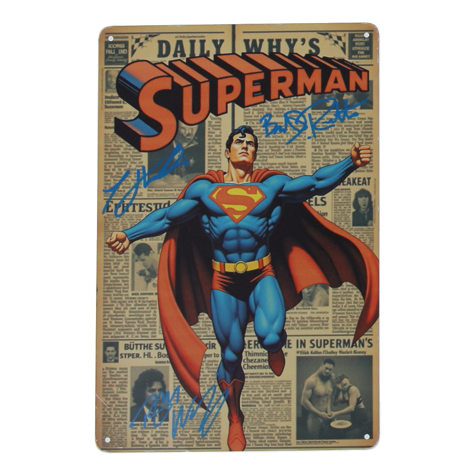 Brandon Routh, Tyler Hoechlin, & Tom Welling Signed "Superman" 8x12 Metal Poster (JSA)