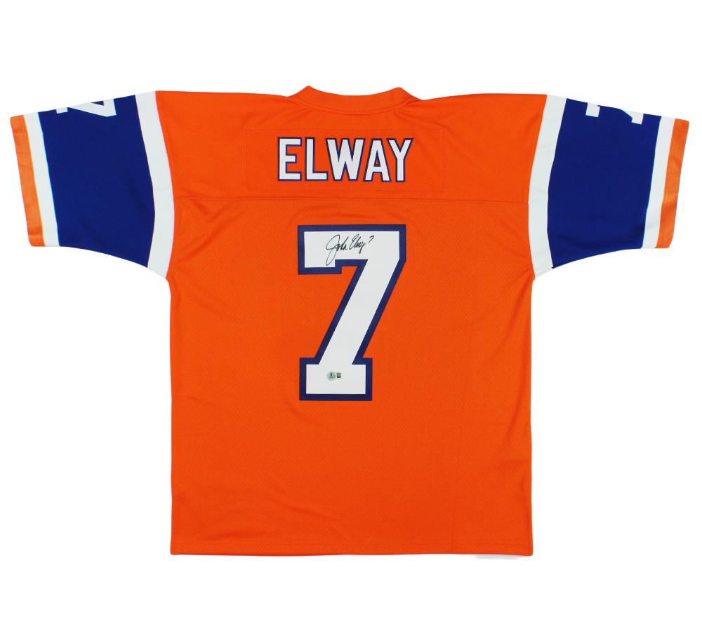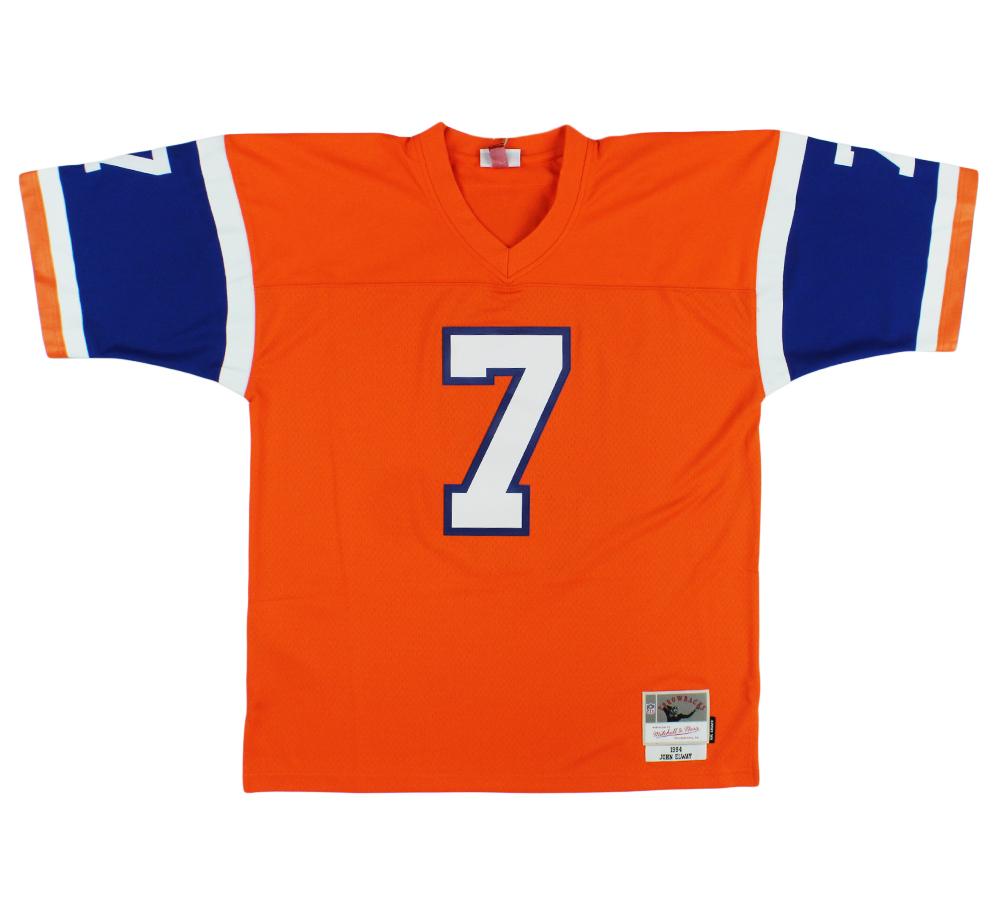 Mitchell & Ness jersey with everything sewn on, size XL. Hand-signed by John Elway (Denver Broncos, HOF).