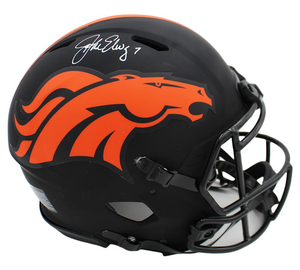 Riddell Denver Broncos full-size authentic on-field eclipse alternate speed helmet. Hand-signed by John Elway (HOF).