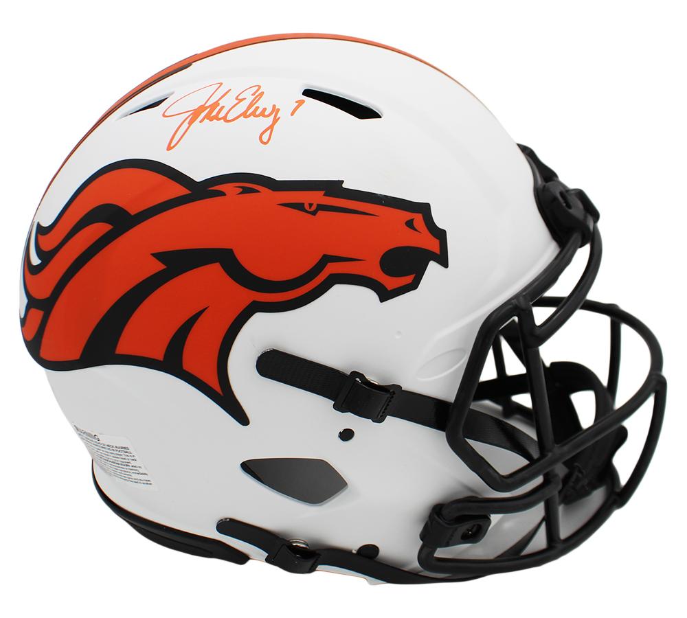Riddell Denver Broncos full-size authentic on-field lunar eclipse alternate speed helmet. Hand-signed by John Elway (HOF).