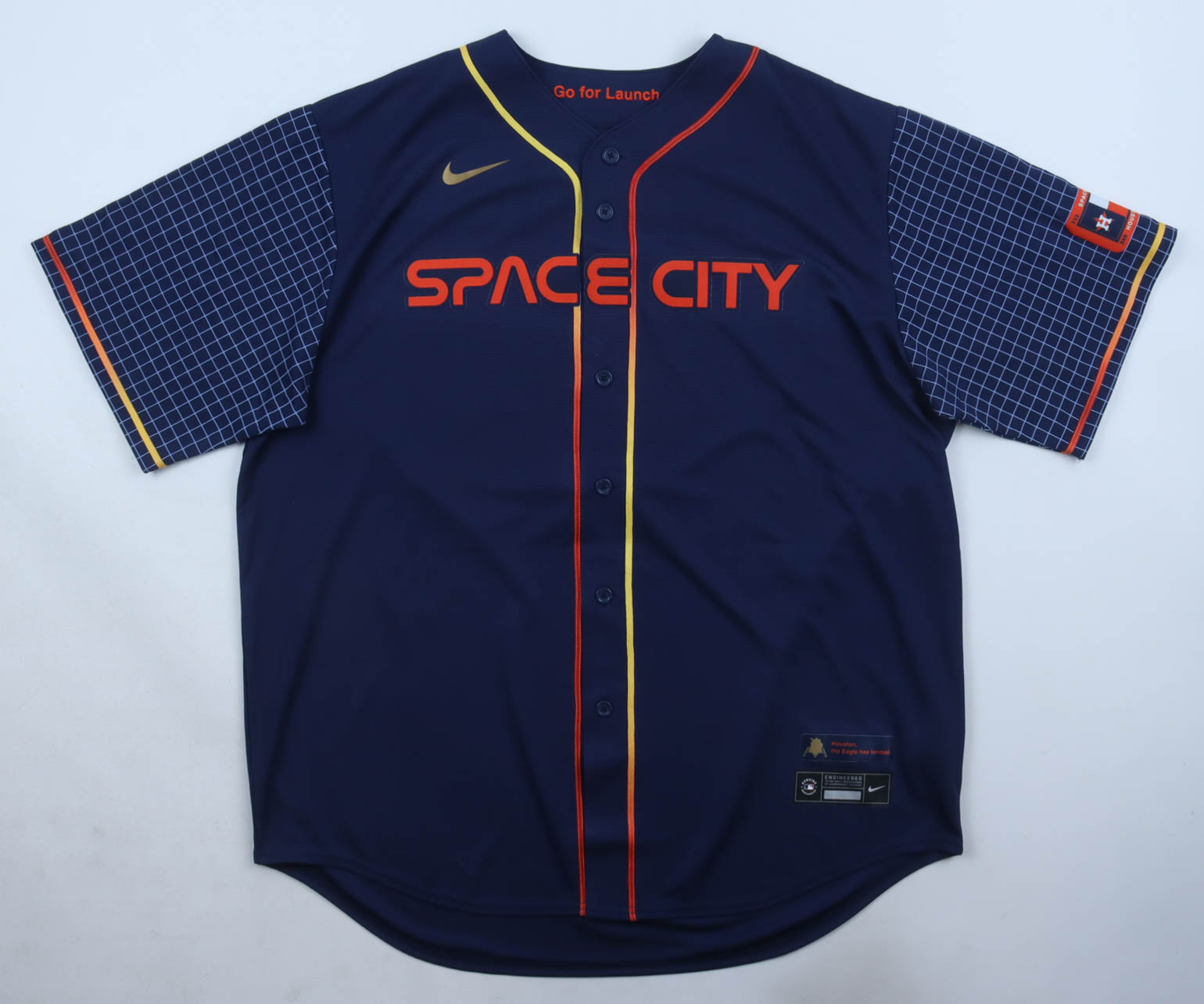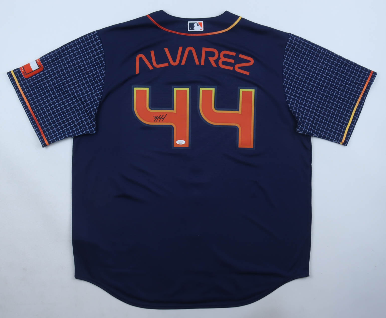 Nike jersey with everything pressed on, size XL. Hand-signed by Yordan Alvarez (Houston Astros).
