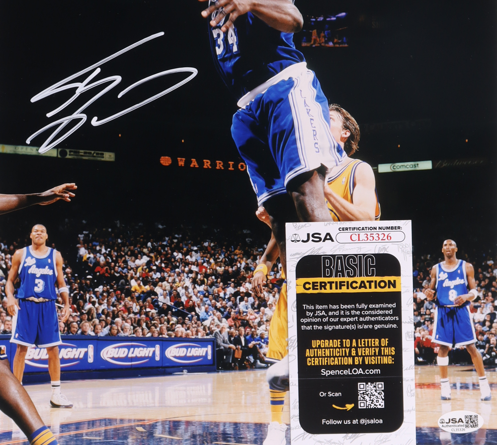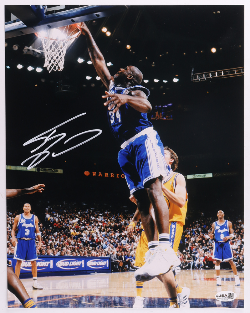 Photo measures 11" x 14" and has been hand-signed by Shaquille O'Neal (Los Angeles Lakers, HOF).