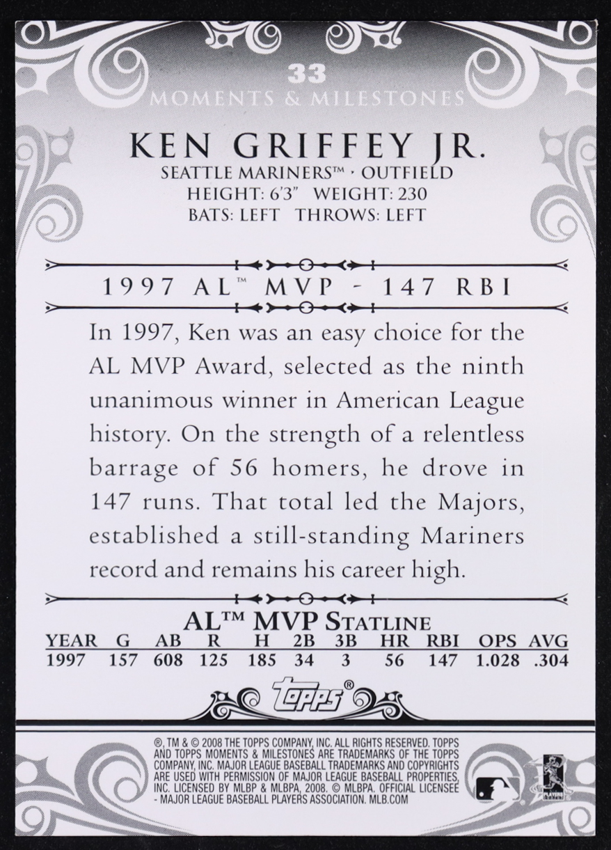 Ken Griffey Jr. 2008 Topps Moments and Milestones 20 RBI #33 #128/150