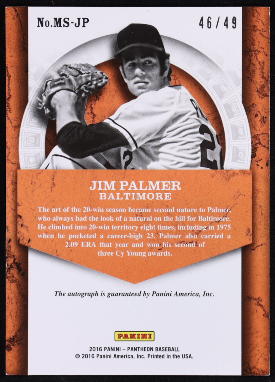 Jim Palmer 2016 Panini Pantheon Milestone Scripts Gold #80 #46/49