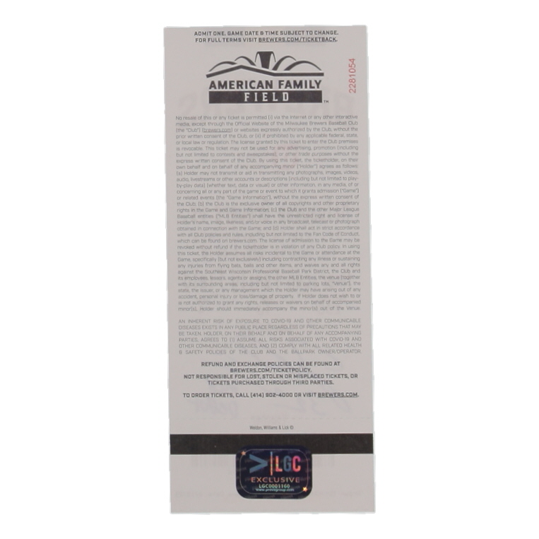 Ticket from June 12, 2025 between the Milwaukee Brewers and the St. Louis Cardinals. Hand-signed and inscribed by Jacob Misiorowski (Milwaukee Brewers).