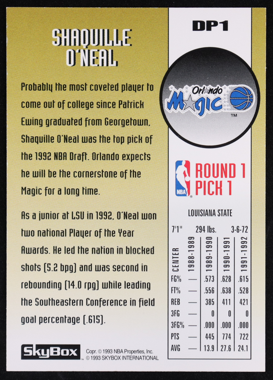Shaquille O'Neal 1992-93 SkyBox Draft Picks #DP1 RC